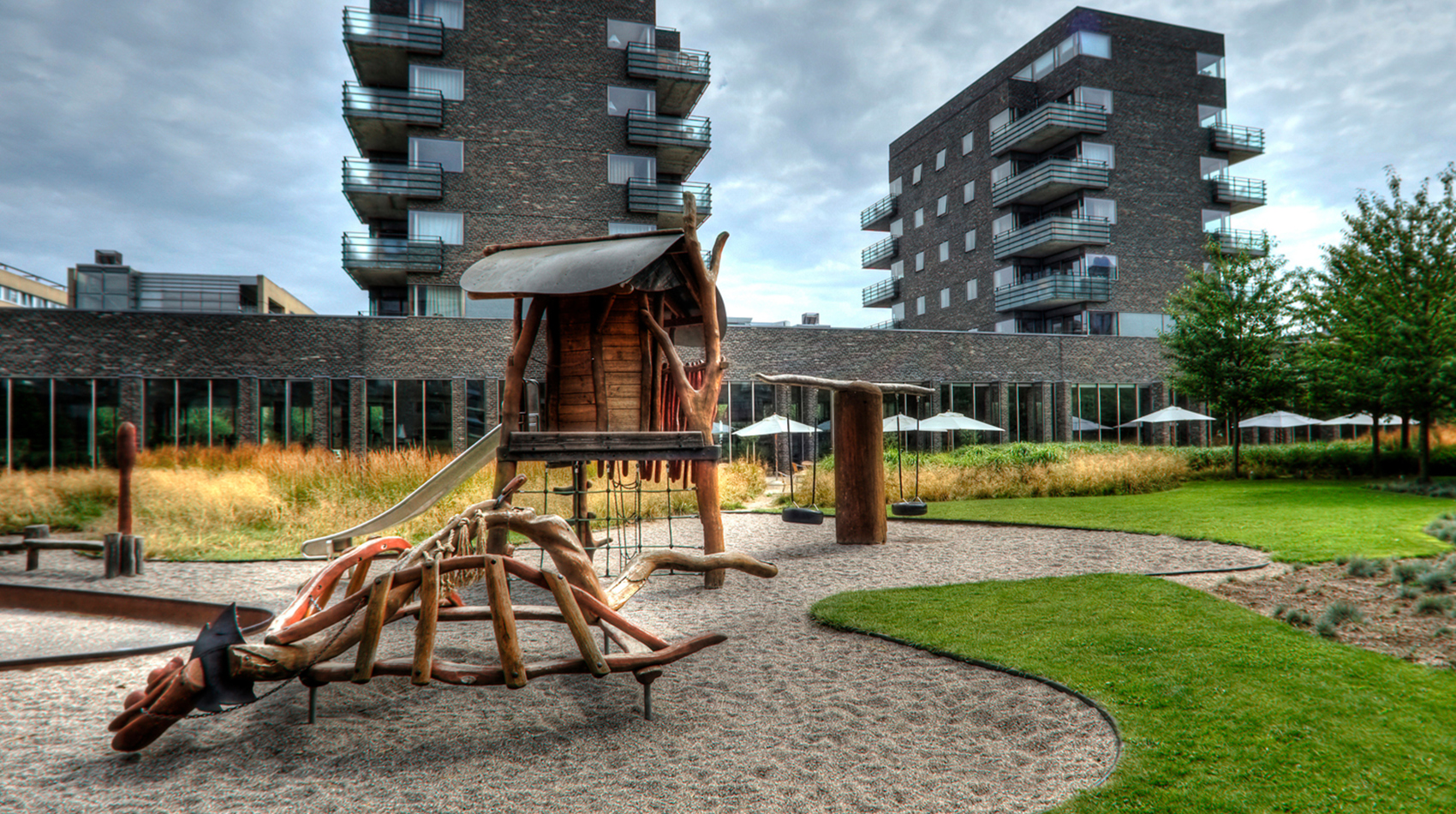 I kan vælge at bo oppe i højden i The Tower med udsigt over Østerbro eller nede ved legepladsen og gårdhaven i The Garden.