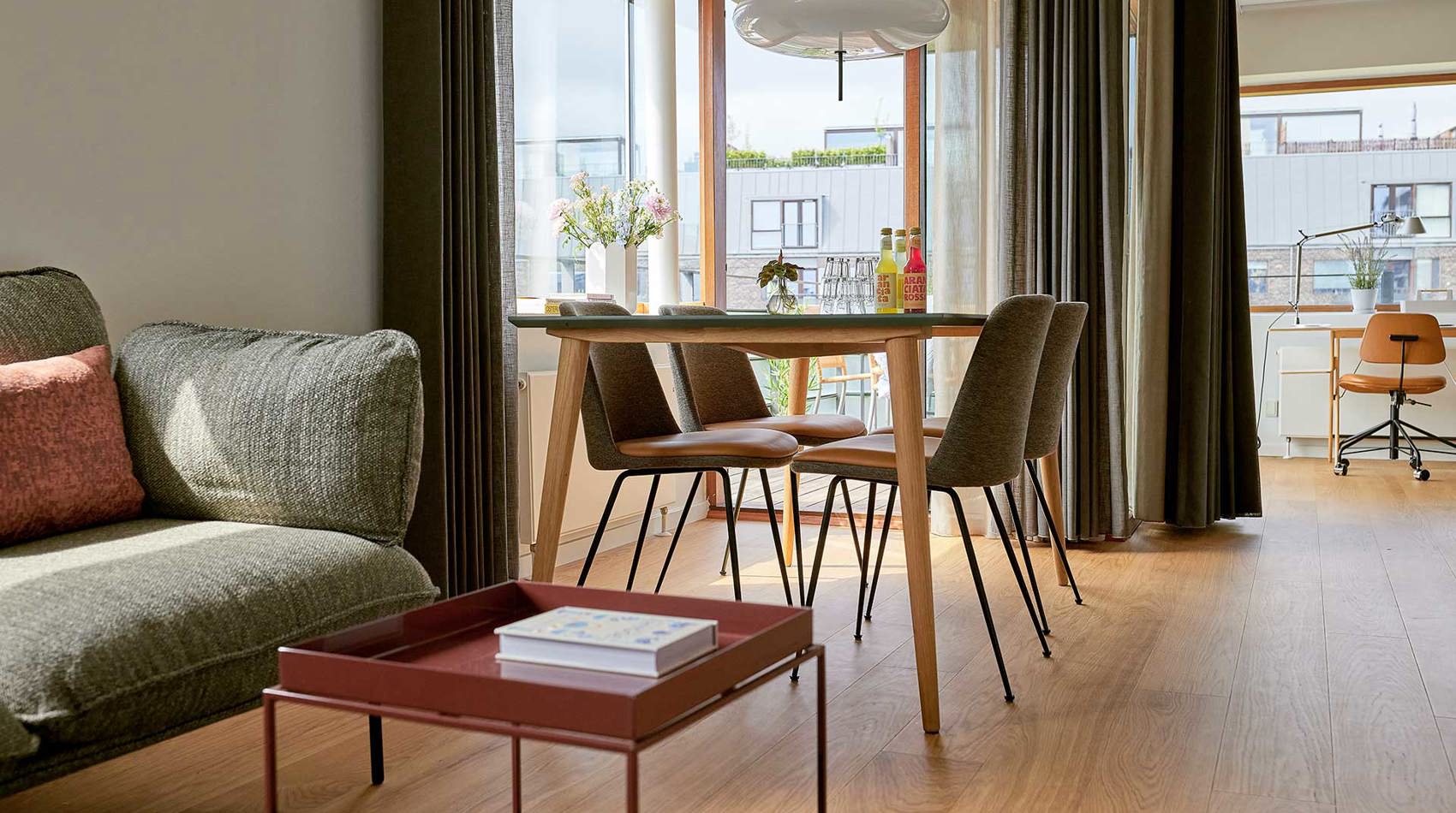 Se Garden hotellejlighederThe Tower består af 37 lækre hotelsuiter, som er møbleret med dansk design fra HAY, &tradition, Gubi og Arne Jacobsen. Alle suiter har en åben planløsning, store karnapper, cool stemning og vild udsigt, når du kommer højt op. Fantastisk tagterrasse på 5. og 16. sal. Restaurant, fitness og pool ligger i the Garden 100 meter væk.