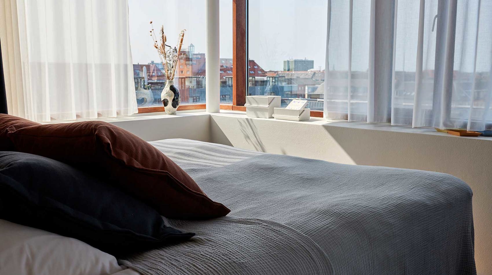 Se Garden hotellejlighederThe Tower består af 37 lækre hotelsuiter, som er møbleret med dansk design fra HAY, &tradition, Gubi og Arne Jacobsen. Alle suiter har en åben planløsning, store karnapper, cool stemning og vild udsigt, når du kommer højt op. Fantastisk tagterrasse på 5. og 16. sal. Restaurant, fitness og pool ligger i the Garden 100 meter væk.