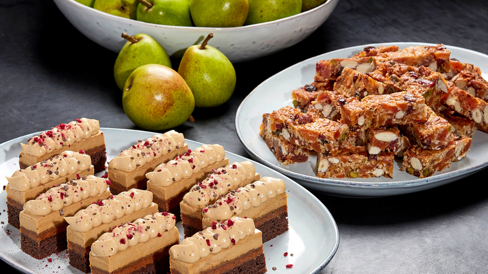 Sødt fra konditoren, fx Cheesecake, frugt/bær-puré og kiksecrumble