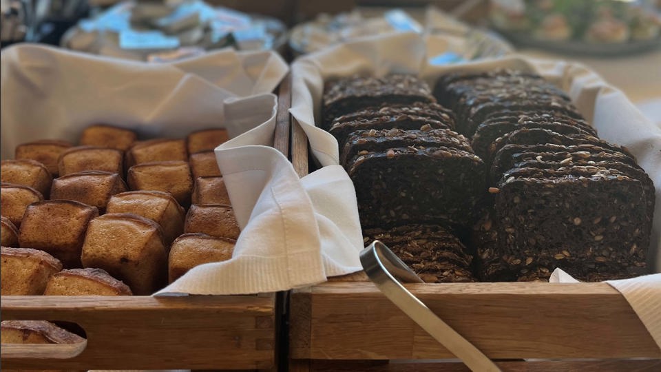 - Rugbrød (chiafrø, hørfrø, græskarkerner, øl, solsikkekerner og sesam)
