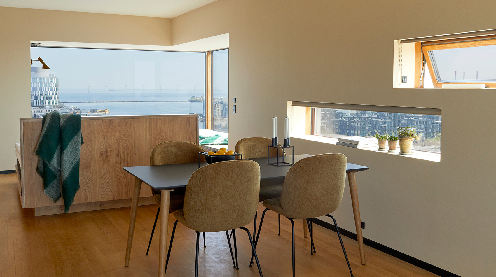 Our apartments are furnished with Danish design from HAY, & tradition, Gubi and Arne Jacobsen.