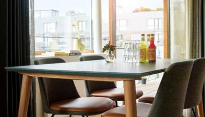Our 44 hotel apartments in The Garden were inaugurated in 2004, but newly renovated in 2023. The atmosphere is cozy and homely, and the apartments are equipped with everything you need in a home away from home. All apartments have a balcony and you can even check in with your family pet. Restaurant, fitness, pool and patio are just an elevator ride away.
